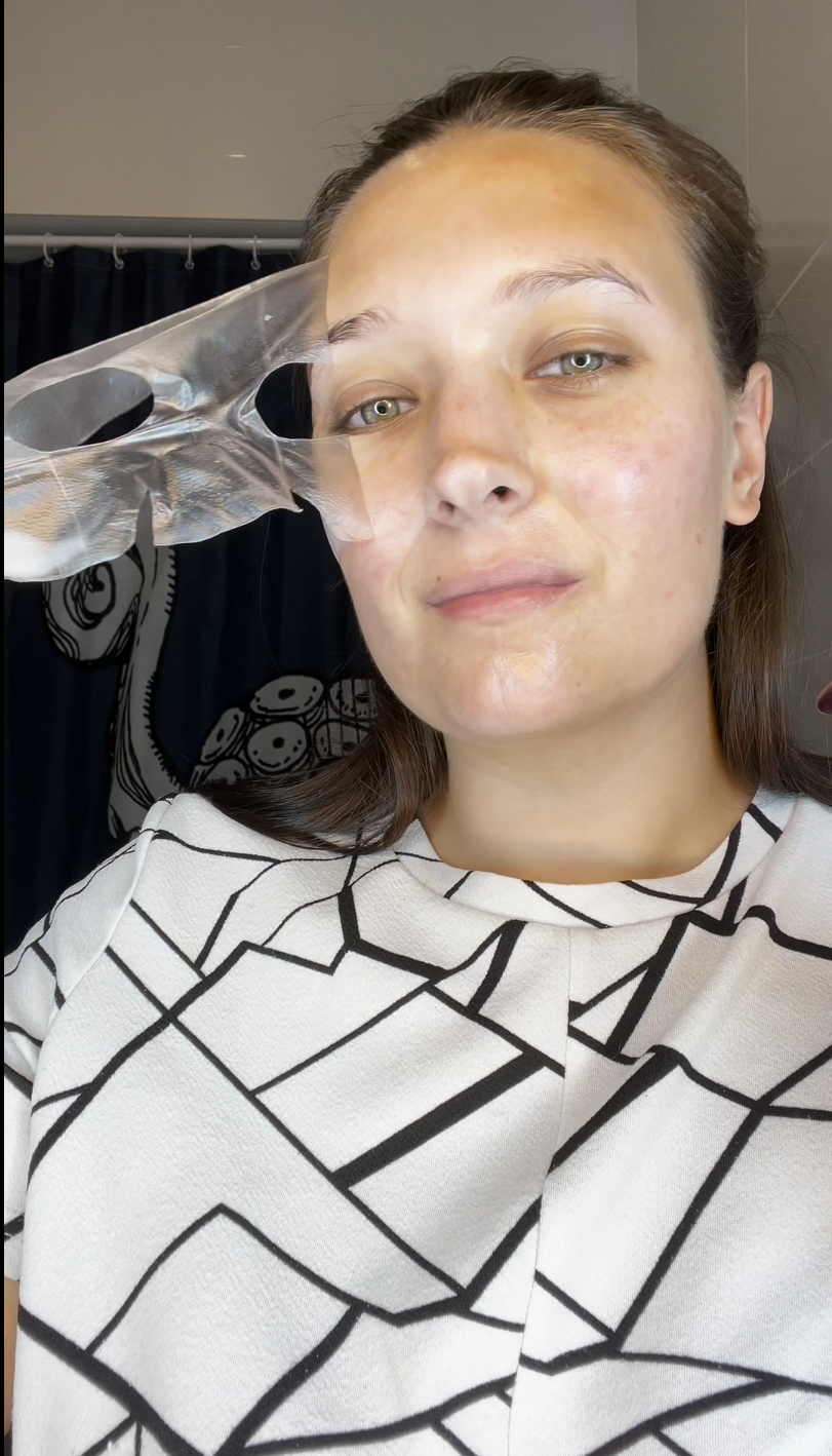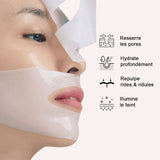 Le masque , composé de deux parties est étonnant par sa texture glissante, mais s'applique facilement. Cependant il faut rester allongé le temps qu'il sèche un peu (une heure), pour qu'il reste bien en place. Au bout d'une pose de trois heures, la peau est apparue visiblement plus douce et hydratée, avec un effet repulpé.